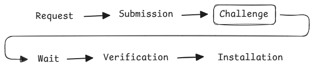 Let’s Encrypt verifies the challenge. If found to be correct, it proceeds with generating a signed certificate based on the Certificate Signing Request (CSR). The resulting file is passed down to the ACME client.
